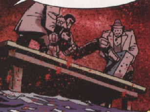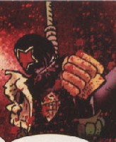 Local travellers: Rico Dredd First appeared: Judge Dredd, 2000 A.D. Prog 1254 History: Rico Dredd defeated Dredd on his return from Titan. Rico let Dredd survive, freezing him so that once a year Rico could briefly revived Dredd to torture him. Comments: Created by Garth Ennis and Carlos Ezquerra. Cal says Rico outdrew Dredd, unlike his mainstream counterpart, but Rico's own dialogue suggests a slightly different reason for Rico winning; confident he was the faster draw, the mainstream Rico gave Dredd his gun back so they could draw against one another in a fair fight, but the alternate reality Rico wasn't so foolish. |