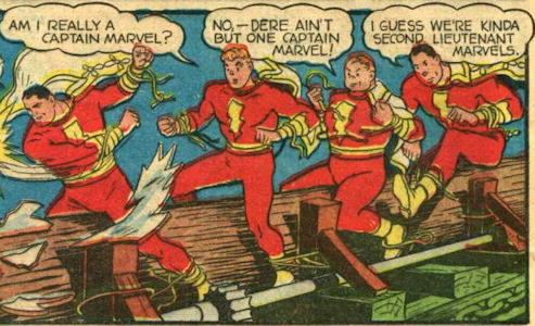 Membership: Lt. Fat Marvel ("Fat" Billy Batson), Lt. Hill Marvel ("Hill" Billy Batson), Lt. Tall Marvel ("Tall" Billy Batson)