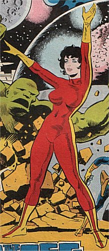 Identity/Class: Android Occupation: Agent of U.S. government Affiliations: member of the Misfits, worked for U.S. government Enemies: Unit One Known Relatives: None Aliases: None Base of Operations: Project Misfit First Appearance: Heroes, Inc Presents #1 (CPL Gang, 1975) Powers/Abilities: Mystra possessed "great mental powers" including telepathy and the ability to make others do her bidding. History: An artificially created human, Mystra possessed various mind powers. For reasons she later could not remember, she robbed a bank in New Chicago by simply convincing the staff to hand over money, but outside the bank she collapsed, and her crime was revealed. Sent to Project Misfit, she met and befriended fellow captives, the alien Shag and mutant Glomb. When the advance guard of the alien Unit One attacked Earth, his vast mental powers took control of humanity, paralysing them while the alien's robots began preparations to loot Earth's fissionable materials, but Mystra proved immune to the control and her fellow captives resistant, if not completely immune. Mystra confronted the alien, but found herself outmatched; however, by diverting his concentration, she inadvertently freed Shag and Glomb completely. They destroyed the robots, and Shag slew the alien just before he could kill Mystra. However Mystra had learned from the alien's mind that he came from an entire planet of such beings, a world driven through space by giant rocket motors, turned into a vast interstellar ship traversing from sun to sun looting whole worlds. Since a single alien had nearly defeated Earth, and there was an entire planet full of them on their way, the three outsiders banded together as the Misfits to stop them. Comments: Created by Wally Wood. |