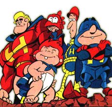 Diaper Man Identity/Class: Unknown Occupation: Baby, later accountant Affiliations: Member of the Mighty Heroes; later member of 'Man, Man, Man, Man, & Man: Certified Mighty Accounting Firm" Enemies: The Enlarger, The Shrinker, The Ghost Monster, The Frog, The Shocker, The Raven, The Monsterizer, The Scarecrow, The Timekeeper Known Relatives: None Aliases: Plastic Training Pants Man Base of Operations: Unknown First Appearance: The Mighty Heroes Episode #1 "The Plastic Builder" (Terrytoons, October 29th 1966) Powers/Abilities: Able to fly, hits enemies with his bottle. This bottle could be used as a throwing weapon, and the extremely elastic dummy at the top could be used to wrap the bottle around objects for retrieval or as a slingshot. The milk in it had rejuvenating properties, and was used to boost Strong Man's strength on more than one occasion. He could wail like a baby (usually under covers), which distracted villians into looking who could leave a little baby along, leading into a sucker punch. History: Unknown Comments: The brains of the Mighty Heroes. As an adult in Ralph Bakshi's version of Mighty Mouse, the adult Diaper Man looked identical to his younger self, except that he had a moustache. He called himself "Plastic Training Pants Man". |