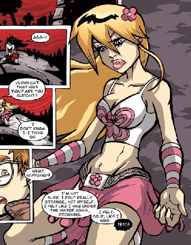 History: Veronica Gainsburrow was the new girl in Romero High School, having only recently moved to Raimesville. Unfortunately an accident on a frozen lake saw Veronica fall through the ice and die in the freezing waters. She found herself transported to the underworld, Sheol, where the rogue Shomavet (Death Guardian) Ra was making plans to conquer the world and unleash Hell on Earth, starting in Raimesville. Discovering she had gained the ability to take on a powerful undead form, Veronica became the only person with a hope of stopping Ra's evil schemes.