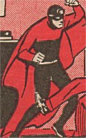 We also have this guy. Looking at his wings, I think he is a take-off on the Hotspur character Black Hawk. Later pictures of him flying with them certainly resemble the picture on the right. He survives the destruction of his world and goes to make a new home in the Black Archer's home dimension. One e-mailer, Paul (no last name given) notes that "Don't know if this is stating the obvious, but if you consider the time when Zenith was produced and the " indie" bent of Messrs Morrison & Yeowell, but, it's always seemed to me that...Black Hawk"s Zenith depiction", bears a resemblance to Clint Boon of the Inspiral Carpets." Certainly does look a lot like that, now he comes to mention it. |