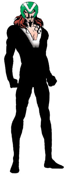 Powers/Abilities: Slaymaster was a master of armed and unarmed combat, skilled in various martial arts. He could spot opponents vulnerable points, and at close range could strike almost too swiftly to be seen. His left hand was coated in a thick, lethally sharpened callous. He was a disguise master, adopting new identities in seconds. He carried weapons ranging from conventional blades, bombs and firearms to gas guns, explosive bullets, strength-enhancing atomic-wristlets, claw gauntlets and nerve-disrupting Jazzlers; he flew using a jet-belt and had a flying rocket-car. He later wore a costume which boosted his strength (lifting 60 tons) and speed.