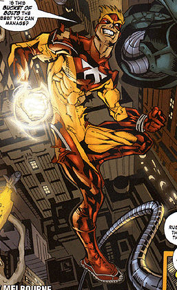 Powers/Abilities: Controls "stellar energy" enabling flight, enhanced speed, strength and healing, as well as energy blasts.