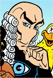 Powers/Abilities: The Silent Witness was an English masked and caped grim vigilante, no longer able to talk , who used his experience gained as an English cop to fight crime. The Stille Getuige however has no mouth and no nose, but can talk. He cannot eat or breathe, but seems still pretty alive. He can become intangible, allowing him to walk through walls. He is the chosen of the Goddess and so he wears the sign of Ton, an amulet with enough power to allow the Lord to create a world.