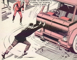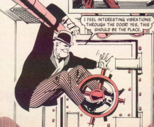 Powers/Abilities: Thrice was incredibly strong and extremely intelligent. He could sense vibrations and energies through his finger tips, and was sensitive and agile enough to be able to open a vault door by locating the tumblers and hitting the door on the right points to unlock them WHILE hanging from the ceiling. He was able to see in the dark by emitting torch beams from his eyes. His right index finger could project a high-intensity laser beam.