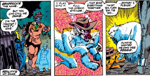 (Mighty World of Marvel II#9/2) - Shortly after this, and with the reality breakdown rapidly escalating, Captain Britain arrived, likewise intending to confront Jaspers. As he entered Number 10, he passed by the fox, which was foaming at the mouth, apparently insane.