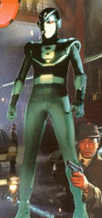 History: After Detective Yokota was killed in the line of duty, his consciousness was electronically transferred into a robot body designed by Dr.Tani. He took on the new identity as a private detective, Hachiro Azuma, but continued to fight crime as the costumed hero 8-Man.