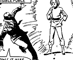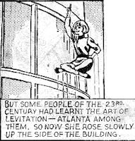Powers/Abilities: Atlanta can levitate (so long as nothing disrupts her concentration), read minds (at least enough to tell if someone is lying), re-arrange molecules of metal objects to make them fall apart or expand, attune the molecules of an inanimate object (such as a stuffed gorilla or a skeleton) to those of someone living so that it follows them around, make her self superstrong and create a force field capable of repelling things - all with the power of her mind. Her time machine can also levitate, though to move laterally she has to freeze it in time and let the Earth's rotation handle the rest.