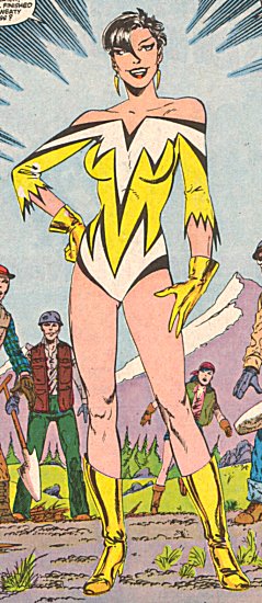 History: Jeanne-Marie Beaubier was separated from her brother Jean-Paul shortly after the two of them were orphaned. Jeanne-Marie was raised by nuns, who believed in being strict with children - so strict that Jeanne-Marie eventually tried to commit suicide in her early teens by throwing herself off the roof of a building. Instead of dying she discovered her power of flight. The next morning she made the mistake of telling the sisters of this "miracle", and was severely punished for her lies and blasphemy. This seems to have been the final straw for her damaged psyche. She developed a split personality: Jeanne-Marie was the good Catholic girl who never broke the rules; Aurora was a hellion out for maximum fun.