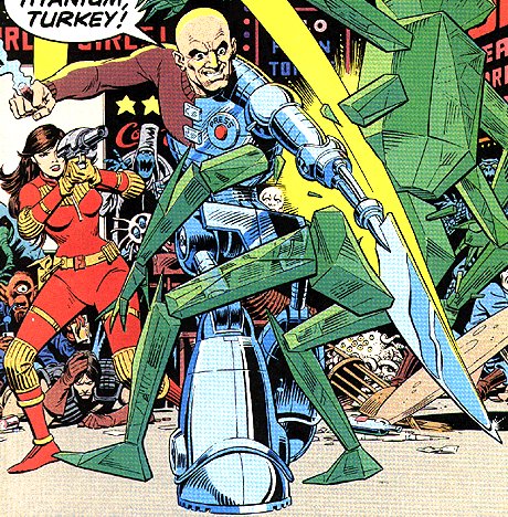Powers/Abilities: Cyborg killing machine, armed with a deadly blade where his left hand should be.