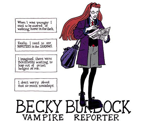 Now Becky continues with her journalistic endeavours, along with a possible romance with Harold Bramble (the son of "Bramble and Son, Vampire Hunters"), and fielding offers she can't refuse from living Shadows. She drinks tomato juice as a blood substitute, and has openly stated she wants out of Jack Staff's weird life, but soon after saying that she got caught up in the Hurricane/Rage-Attacks incident.