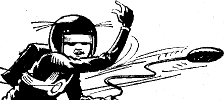 Their costumes consist of black leather cat-suits, with black backpacks (which at a guess hold their civilian clothes) attached by yellow straps. They wear crash helmets, modified to look like cat's faces, to hide their identities. Since Katie wears a short skirt as part of her school uniform, the two must keep their costumes hidden in their school bags, because on at least one occasion they switch identities in an alley on the way home from school. How they fit helmets, leather suits and school books in to one satchel, I have no idea. Since I wrote the above paragraph, Tony Kehoe has been in touch to say "you ask rhetorically whether Billy (and Katie) carried their costumes in their schoolbags. I can tell you unequivocally that the answer is yes, because I remember a BtC episode from before Katie joined Billy in which Billys headmaster becomes suspicious that one of his pupils is BtC, and so Billy (William Granger) hides his costume in the school boiler room before his bag is searched. That still doesnt answer the question of how it all fit in the duffelbag, though. Maybe his school bag is like the TARDIS: bigger on the inside?" |