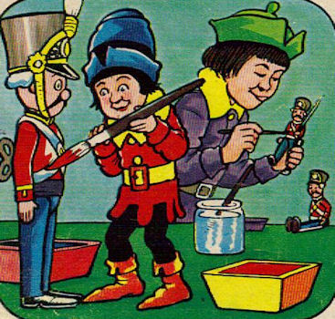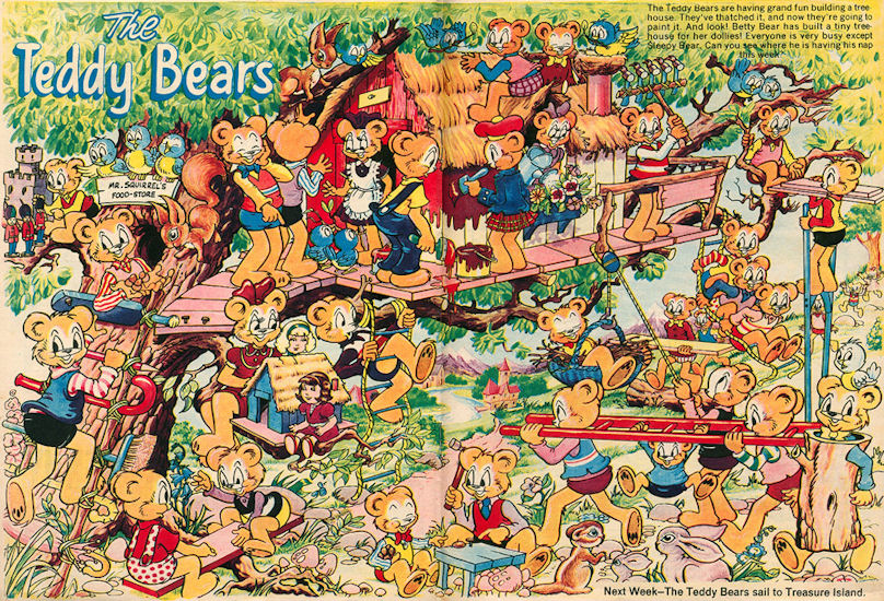 Strips: Aladdin and His Magic Lamp, Baby Crockett, Billy Big Ears, Bimbo, Bimbo's Playmates, Buttons, The Cheery Chicks, Cinderella, The Cow With the Crumpled Horn, The Good Ship Lollipop, Goosey Gander, The Hector Heathcote Show, Jingles, The Jolly Mixtures, Little Hans and Big Feet, Little Snow White, Mandy the Mermaid, Michael and May of Sea-Shell Bay, Mighty Mouse, Old MacDonald's Farm, A Page for Your Scrapbook, Pam's Playmates, Patsy the Panda (later Peter and Patsy - The Perky Pandas), Pip the Penguin, Polly and her Dollies, Pussy Willow, The Teddy Bears (later Puzzle Play-Time with the Teddy Bears, The Teddy Bear's Puzzle Page), Tick-Tock Tommy, Tim Twinkle and the Toytownies, Tinker and the Taylors, Tom Thumb, Wendy in the Land of Nursery Rhymes, Yorky, Young Robin Crusoe, Your Bedtime Story (series of short prose tales)
