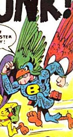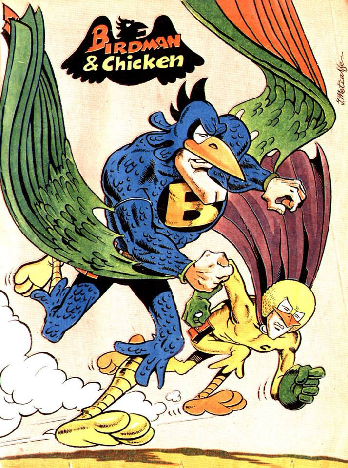 Comments: Two of the world's more incompetent heroes, Birdman and Chicken fought crime badly. They usually got to the scene in the Bird-mobile, although sometimes they had to use the Bird-bike instead.
