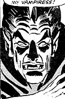 (SSM&CBW #238/2) The Baron, in his bat form, watched as Captain Britain flew off to Darkmoor. Then he too set off for the castle, which he reached just ahead of his enemy. Changing back to his vampire form, he was greeted by Hugo. The Baron took his prospective bride to his secret chamber within the castle, where once he had sold his soul, and there he summoned the visage of his master. Courtney reacted with predictable terror, throwing a lamp at the Baron. The fixture glanced off him harmlessly, and he stepped forward and bared his fangs, informing the girl of his plan to turn her into a vampire too. She fled, ignoring his cry that there was no escape, and ran straight into the arms of Lord Kemp. Her initial relief was short lived though, as she watched the features of the aristocrat warp into those of the vampire. Finally she realised that the two men were actually one.
