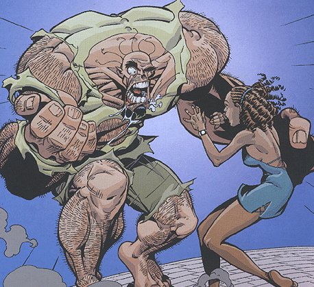Powers/Abilities: Superhuman strength in berserk, transformed state; reverts to normal human when unconscious.