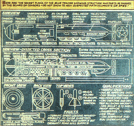 he travelled the world in the Blue Tracer, battling the Axis forces.