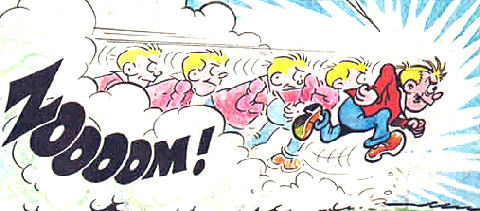Comments: Steve debuted in Monster Fun's Badtime Bedtime Book, a series of one-off stories parodying famous novels, films and television shows, before becoming a regular feature in the newly launched Krazy, where it ran from the first issue (16th October 1976) to the last (#79, 15th April 78) under the name Buytonic Boy. He survived Krazy's cancellation and merger into Whizzer and Chips where he ran for nearly eight years more (22nd April 1978 - 8th February 86).