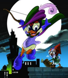 Whatever the truth, Darkwing Duck was a small time hero in St.Canard for several years, before a chance encounter while he was trailing Taurus Bulba, agent of FOWL, gained him a sidekick, Launchpad McQuack. He later adopted Gosalyn, grand-daughter of the late Professor Waddlermeyer, to protect her from Bulba.
