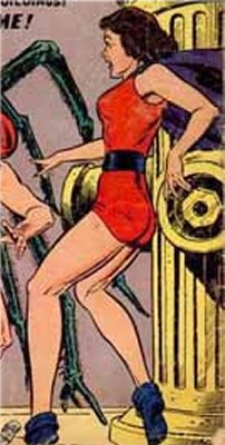 History: Martha Roberts was the girlfriend of Darrell Dane, the vigilante known as Doll Man. After Darrell had been adventuring for a few years, Martha began to wonder how she could more actively help her man fight crime; simultaneously, Darrell was wondering how he might get himself a partner. Somehow their combined desires caused Martha to gain similar powers to Darrell, and she shrank down to six inches in height. Taking the name Doll Girl, she became her boyfriend's new partner.