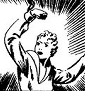 Later (on the premiere of her comic; see below) Dotty discovered that Hermes had returned and was plotting new crimes, so she sought out Dr. van Lorne again. He had now perfected his research and injected her with an improved version of "hyper lymph" (now adding falcon to the mix). This gave Dotty new and improved powers, and she became a heroine once more.