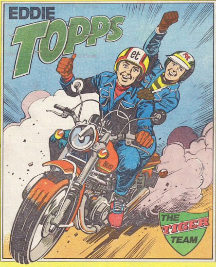 Comments: Eddie Topps first appeared as the star of the strip Topps on Two Wheels in the first issue of Speed. He was one of the characters who survived the comic's cancellation and transferred to Tiger, where artist Mike Western took over drawing the strip. Eddie enjoyed a lengthy run in his new home, though his strip's title changed to simply Topps after a time.