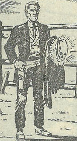 Decades later, Corbett's descendent (see comments) was the owner of the Leaning H ranch, and though most of the region's white settlers remained wary of the Kiowa, peace had been established, to the extent that the ranch owner's son, Doc Laraby, had grown up friends with some of the Kiowa and now treated their injuries from time to time. However, the villainous Larsen coveted the ranch, and with the assistance of his sidekick Slash Denison, he murdered Doc's father, disguising the death to make it look like as accidental rockfall. Larsen faked a will that left the ranch to him rather than Doc, but there were two witnesses to the murder, a Kiowa brave and an old prospector. To cover his tracks, Larsen subsequently killed the prospector, hiding his body under a rockslide in Thunder Canyon, but he was apparently unaware of the brave. Nearly a decade after the murder, around the middle of the 19th century, Doc Laraby learned the truth about his father's demise from the brave, but since Native testimony would not be permitted in court, Laraby began a surreptitious hunt for the prospector, unaware he too was dead.