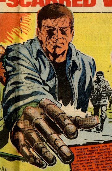 History: Gaunt was a British operative during the Second World War, working for the SOE. Like all members of the SOE his job was to work behind enemy lines, without much communication with his superiors, carrying out acts of sabotage. Captured at the start of the war, he was tortured by Colonel Bluthal, the "Paris Butcher", who mutilated his right hand. Returned to England (by the simple method of dropping him out a plane), Gaunt slowly recovered in hospital. To replace his now useless hand, he designed for himself a metal hand. No longer wanted by his former employers, Gaunt set about getting revenge. Eventually succeeding, the SOE changed their mind, and Gaunt continued to battle the Nazis on behalf of his country.
