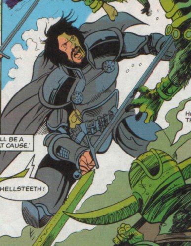 History: Gawain was a recreational android built by Stark Industries for the Arthurian Theme Park, Questworld. When he went rogue, the Knights of Pendragon calmed him down and took him in because their instruments showed him to be imbued with the Pendragon spirit by the Green Knight. He proved vital very shortly afterwards when his inhumanity was his saving grace, allowing him to enter a highly radioactive area to prevent a disaster, where the other Pendragons would have died instantly.
