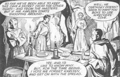 History: School friends Hugh Mason, Harvey Doane and Bob Gower formed a hooded secret society to fight injustices done to their fellow pupils in Harcourt Abbey School, a boys' boarding school run by the stern headmaster John Cartwright. When his daughter Penny's school was closed by an outbreak of scarlet fever, Cartwright had no option other than having her stay at Harcourt Abbey until the holidays. Quick-witted and inquisitive, Penny soon discovered the identities of the Grey Ghosts, but rather than revealing her findings to her father, she instead became the fourth Grey Ghost.