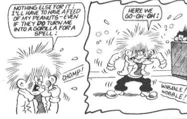 Powers/Abilities: Guy transforms from a regular looking school boy into a large gorilla whenever he eats peanuts.