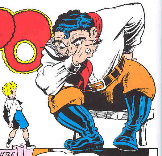 History: Gypo was a giant of Romany origin who lived in the woods of an unspecified country, and liked to frighten, though not actually harm, anyone who passed through his territory. However, he found his match in the youthful pre-teen Bobby, who proved unimpressed with all of Gypo's attempts to scare him; when Gypo finally gave up in despair, Bobby began to show some sympathy, but their discussion was interrupted by the arrival of Gypo's wife, who chastised him to return home and look after his pet Fido.