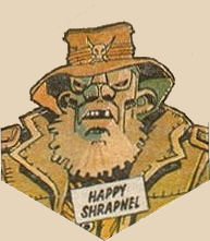 History: Happy Shrapnel was a veteran member of Hammerstein's original squad during the Volg War, and when Hammerstein was told to gather a squad to go to Mars, Happy was one of the first robots added. Soon after the Mars mission ended it is reported that he died during a brawl.