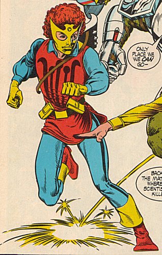 Comments: Heartstring was created as a counterpart to DC's Teen Titan character Jericho, as part of a secret cross-over between The Teen Titans and DNAgents. The same month that the issue of DNAgents came out which featured Project Youngblood, an issue of Teen Titans had that group encounter the genetically engineered heroes The Re-Combatants, who each had counterparts amongst the DNAgents. The two storylines mirrored one another, except at the climax, when the group which perished was swapped around (i.e. the guest stars were the ones who heroically sacrificed themselves in each case).