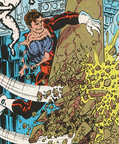 Powers/Abilities: He is possessed of increased strength and durability, due to his rock like body. After his initial transformation, he had a non-human, rocklike appearance, but later he appeared looking relatively human, although with his rock-skin under his human one (see picture). This suggests he either regrew a surface layer of normal skin, or that his teammate Doc Danger devised a fake one to wear over his new form.