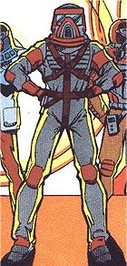 Powers/Abilities: Matt Trakker was one of the creators of the M.A.S.K. vehicles and masks. He often wore the Spectrum Mask (shown) or the Ultra Flash mask. Spectrum could fire laser beams, generate shrill noises, had some sensory abilities, and ould control a fall. Ultra Flash produced a blinding burst of light. Trakker normally piloted Thunder Hawk, a car which could convert into a jet, but he sometimes drove the Rhino tractor rig; when he did so, he would generally wear the Ultra-Flash Mask. He also co-piloted the Volcano while wearing the Lavashot mask which could fire streams of molten lava. Finally, he occasionally drove Goliath and wore the Shroud Mask, which could create a Smokescreen.