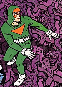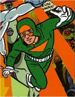History: Gordon Kirby is an otherwise normal guy who found he enjoyed patrolling the rooftops of his home city in a crimefighting costume (a Sears jogging suit, modified by his sister to include a hood). He's not really a superhero (though he did once stop a mugging), but he's often found himself in the right place at the right time, and been forced to act heroically. Sometimes he is hired to do good deeds. His own view of his goals is summed up by his desire "To dominate the world with peace, love, and free beer." In his career he has battled an insane psychiatrist, terrorists, and even servants of the Devil.