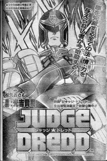 Comments: The manga version of Judge Dredd was created by Matsumoto Taiyo and Mitsuyoshi Kenji, based on the character created by John Wagner, Alan Grant and Carlos Ezquerra. He only appeared in a single 45 page story published to coincide with the release of the Sylvester Stallone Judge Dredd movie, though the manga has no resemblance to the film, bar both sharing the same comic book source.