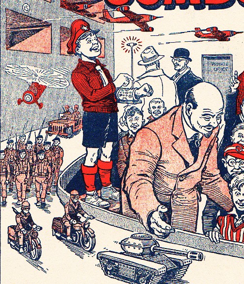 Greg Ash informs me that "As you can imagine, General Jumbo has also been parodied by VIZ. The strip was called "General Jubblies". In it, the character had a radio controlled army but they weren't soldiers, they were robot copies of Charlie Dimmocks' breasts! In the story, the Mayor is being bothered by an elderly gentleman who wants to complain about something or other. The General heroically saves him by ordering his Robotic Norks to bounce up and down and give the gent a heart attack."