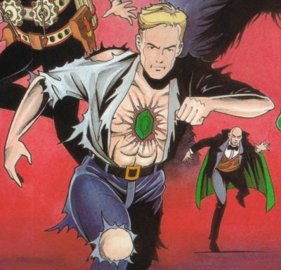 Powers/Abilities: The Eye makes Tim totally invulnerable. However it didn't seem to protect his clothes quite so well, and he had to be careful it didn't come loose from the chain that held it round his neck, or he would become mortal again. If Tim touched someone they too would be covered by the eye's mystic power (he once grabbed Doctor Diamond's hand to grant him temporary invulnerability to arrows fired at him.) Kelly's invulnerability is quite astounding, to the point where he can actually survives a nuclear blast at ground zero with no harmful side effects in one story (how the chain that holds the stone on him also survives is another matter). Four other men also touching the eye when the bomb goes off are likewise protected.
