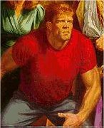 Comments: Monk is 5'2" and weighs 260 pounds of solid bone and muscle. He appears to be an almost neanderthal-like throwback, with pronounced simian features - coarse red hair on most of his body, long arms which reach below the knees of his bowed legs, and an extremely low forehead.
