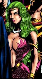 Powers/Abilities: Pisces possesses the ability to generate a water-like substance, which she can form into various shapes. She can also use it to make herself fly while surrounded by the substance. Furthermore she can transform between a mermaid form and a human one.