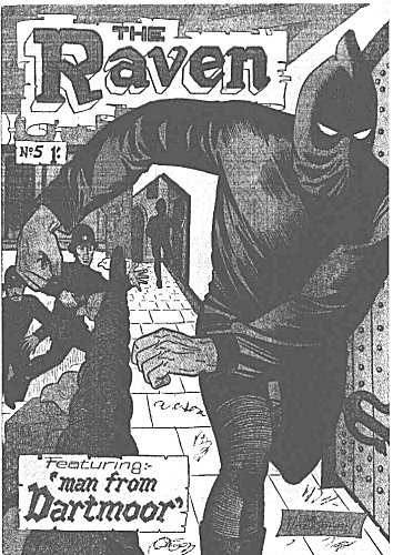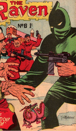 (Raven Comics #5) Bully Moyes, convicted for murder during a robbery, broke out of prison and sought out the Raven. He claimed that it was his partner O'Toole who killed the victim, a partner who got away, and who now lies dying. Pleading for the Raven to help him before his one chance of proving his innocence passed away, he convinced the masked man to check out his story. The Raven travelled to London, where he broke into O'Toole's home, and asked him to confirm Moyes account of events. At first the partner agreed with what Moyes told the Raven, but the Raven, noting from the crosses O'Toole had in the room that he was religious, asked him to swear on the cross taht what he had told was the truth. O'Toole reluctantly admitted he was covering for his former friend, figuring that with death imminent, he would take the fall. The Raven returned to the Manor, where Moyes had been hiding out, and promised to return him to prison. But Moyes made a run for it...straight into the police, who gunned him down when he tried to shoot his way out.
