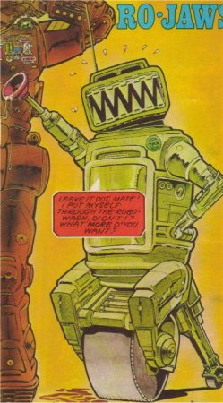 History: Ro-Jaws (official designation FRED-2L) was sold from his job as a sewer droid because he had faulty language and obedience circuits. Going through a number of owners, he eventually ended up in the Ro-Busters squad, where he met Hammerstein. When the owner of Ro-Busters decided to destroy them and claim the insurance, it was these two who ended up leading a flight for freedom.