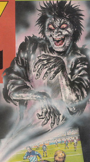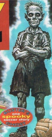 Buster's Ghost: Buster Madden was a top player for Blackport Rovers until he was killed in a car crash. Refusing to rest, Madden returned as a ghost, determined to help his team win matches. Only his cousin / Blackport teammate, Nigel Foster, could see him. Created by writer Tom Tully and artist Solano Lopez, Buster's Ghost appeared in Roy of the Rovers between 5th December 1992 and 1993. Blackport Rovers was also the team that earlier Roy of the Rovers' character Nipper had played for. |