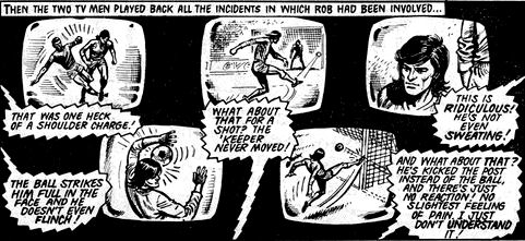 Strips: Hot-Shot Hamish, Mighty Mouse, Roy of the Rovers, Billy's Boots, Tommy's Troubles, The Hard Man, Dexter's Dozen, The Safest Hands on Soccer, The Footballer Who Wouldn't Stay Dead, Goalkeeper, Playmaker, Durrell's Palace, Wayne's Wolves, The Marks Brothers, Mike's Mini Men, Mi££ionaire Villa, Simon's Secret, Smith and Son, The Football, The Boy Who Hated Football, The Kid from Argentina, The Apprentices, Harker's War, Nipper, The Wheelchair Wonder, Space Invader, Harker's War, The Team That Went to War, Johnny Cougar, Project 917, Kevin's Chance, Goalmouth, Buster's Ghost, United, Cheat, Future Ball, Dream Keeper, Racey's Rocket, Football Family Robinson, The Chocolate Bar Kid, The Legend, Kevin's Chance, Who is Arrow?