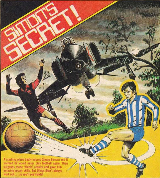 Simon's Secret: Simon Benson was not very good at football, although he sometimes played for Westlake School's third team. Then he had an accident, was given "implants" to his left leg, right hand and ear, and he became a bionic boy. |