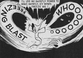 Powers/Abilities: (the Spook) Able to fly and to become insubstantial. Can summon icey winds, or transform things into monsters. He's also able to shrink people or himself, and to turn things invisible. (Sam) None.