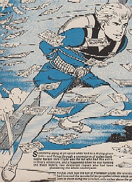 We also have this guy. Looking at his wings, I think he is a take-off on the Hotspur character Black Hawk. Later pictures of him flying with them certainly resemble the picture on the right. He survives the destruction of his world and goes to make a new home in the Black Archer's home dimension. One e-mailer, Paul (no last name given) notes that "Don't know if this is stating the obvious, but if you consider the time when Zenith was produced and the " indie" bent of Messrs Morrison & Yeowell, but, it's always seemed to me that...Black Hawk"s Zenith depiction", bears a resemblance to Clint Boon of the Inspiral Carpets." Certainly does look a lot like that, now he comes to mention it. |